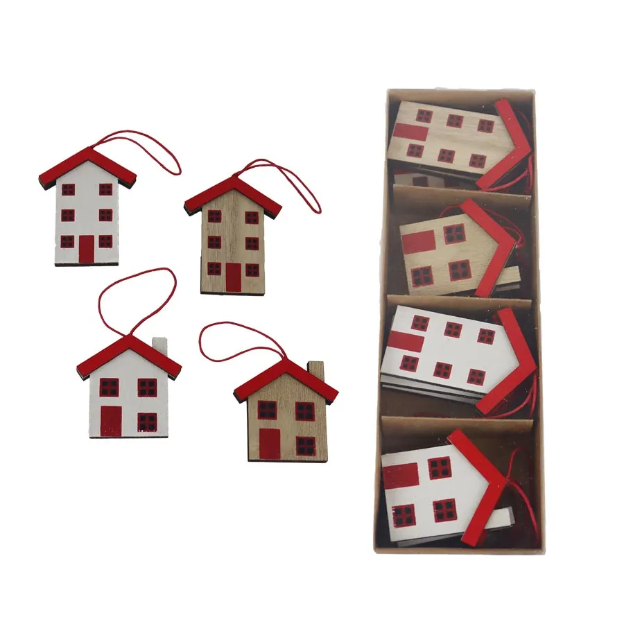 Set dekorativer Häuser zum Aufhängen. Das Set enthält 12 Häuser.