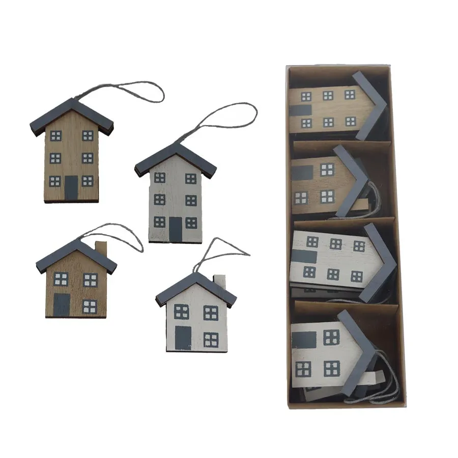 Set dekorativer Häuser zum Aufhängen. Das Set enthält 12 Häuser.