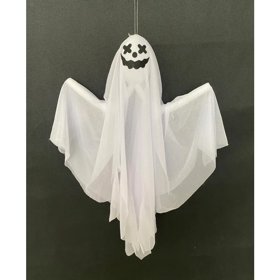 Gruseliger Baumwoll-Hängegeist in Weiß. Perfekte Dekoration für Halloween und Themenpartys.