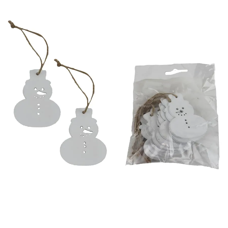 Set dekorativer Schneemänner zum Aufhängen. Das Set enthält 10 Schneemänner. Maße: Weiße Farbe. Material auf Holzbasis.