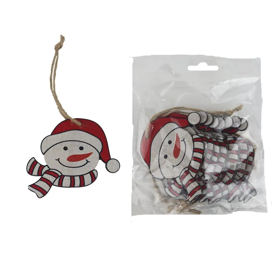 Set Schneemänner zum Aufhängen. Das Set enthält 10 Schneemänner. Maße: Farbe: Kombination Weiß, Rot. Material auf Holzbasis.