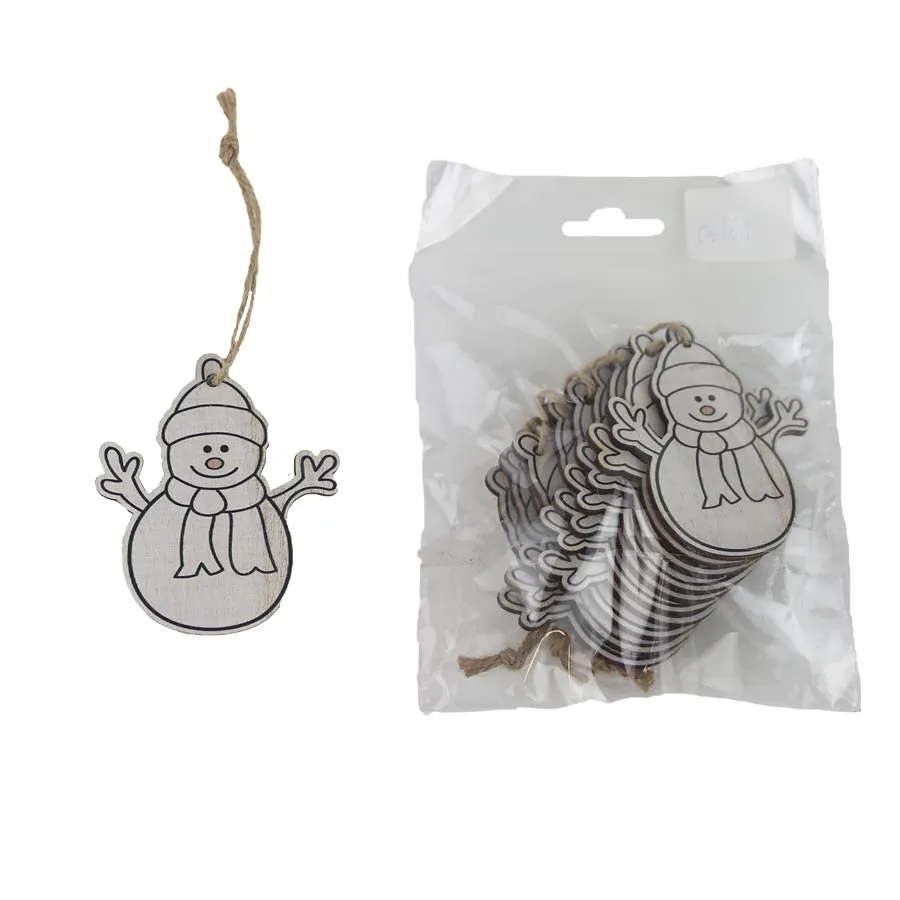 Set dekorativer Schneemänner zum Aufhängen. Das Set enthält 10 Schneemänner. Maße: Weiße Farbe. Material auf Holzbasis.