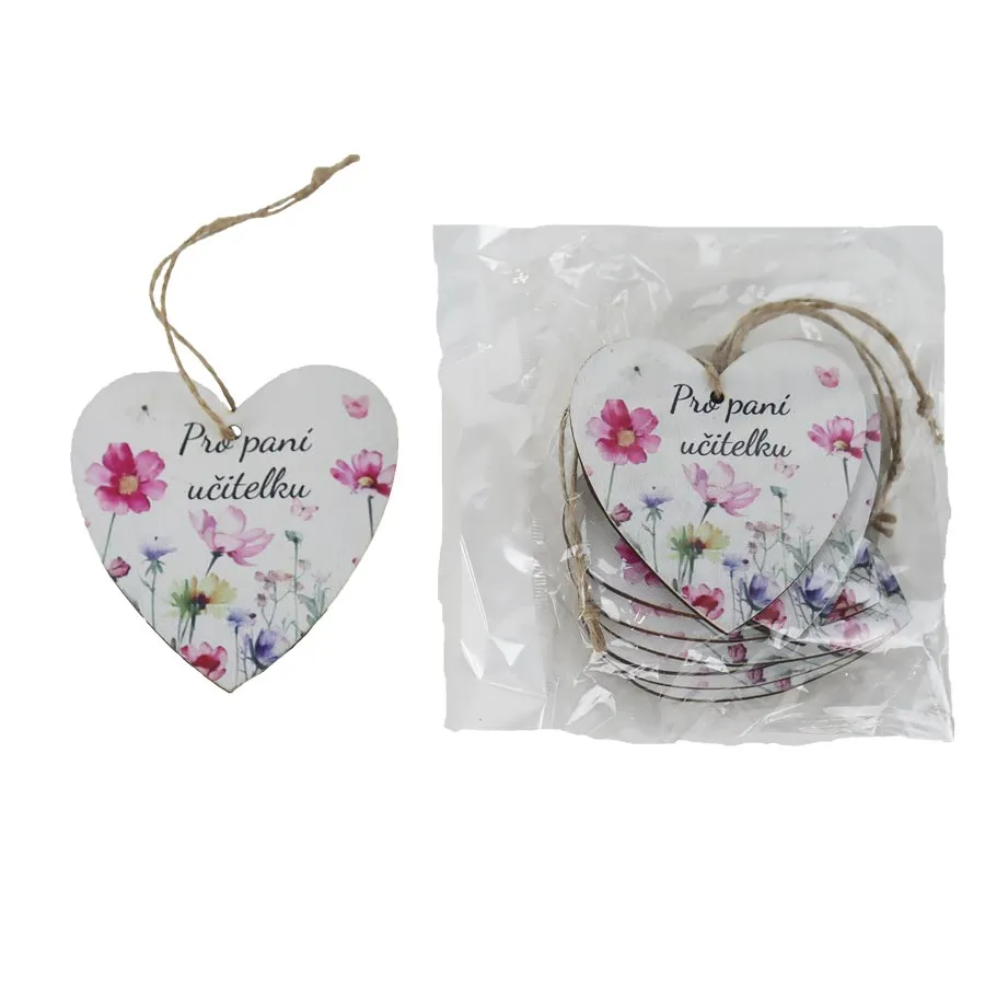 Hängendes Dekorherz mit Aufschrift Pro paní učitelku, 10 St. D7879