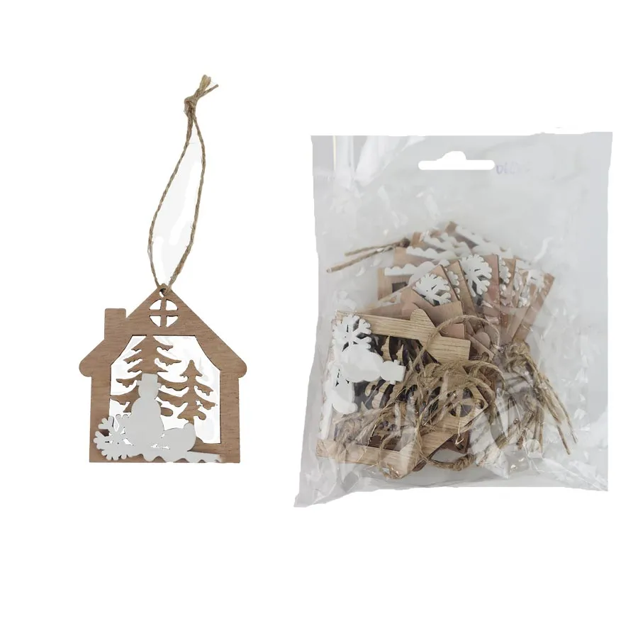 Set dekorativer Häuser zum Aufhängen. Das Set enthält 10 Häuser. Maße: Farbe: natürlich. Material auf Holzbasis.