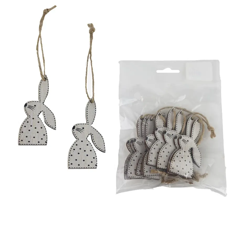 Set Dekohasen zum Aufhängen. Das Set enthält 10 Hasen. Maße: Weiße Farbe. Material auf Holzbasis.