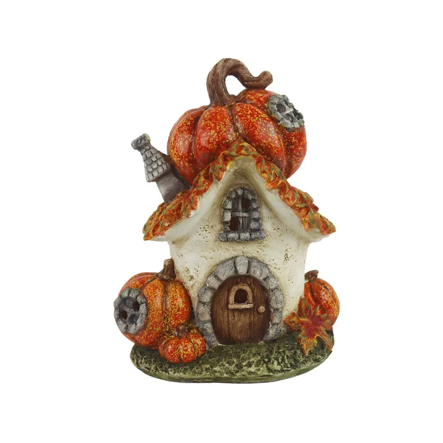 Haus mit Kürbissen und LED-Beleuchtung X6159