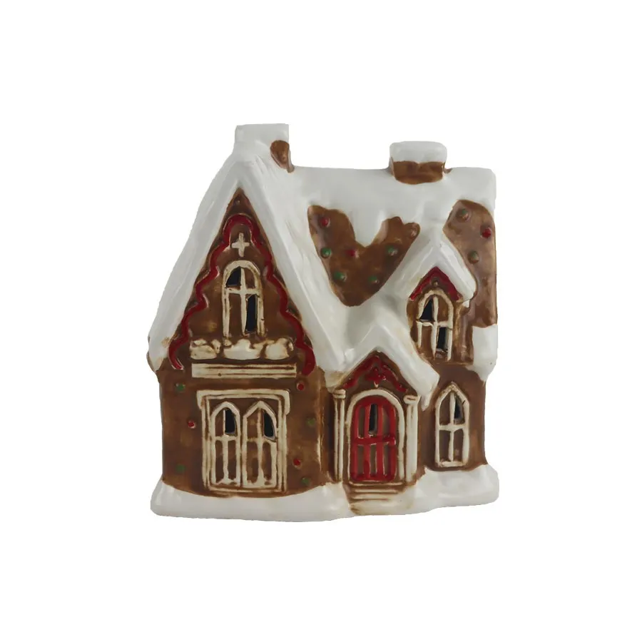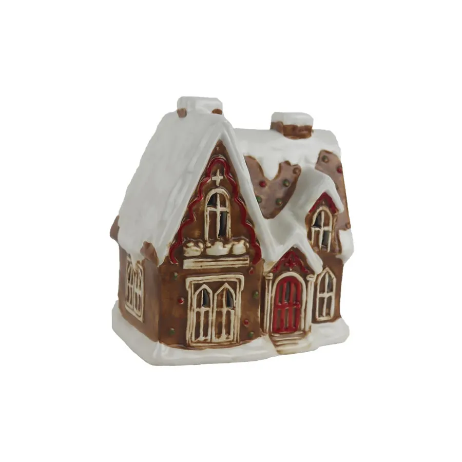 Lebkuchenhaus-Dekoration mit LED-Beleuchtung.