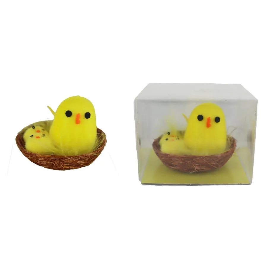 Osterdeko-Henne mit Küken im Nest.