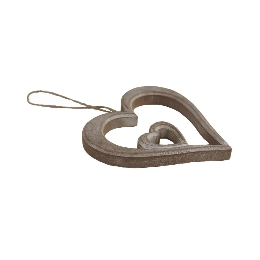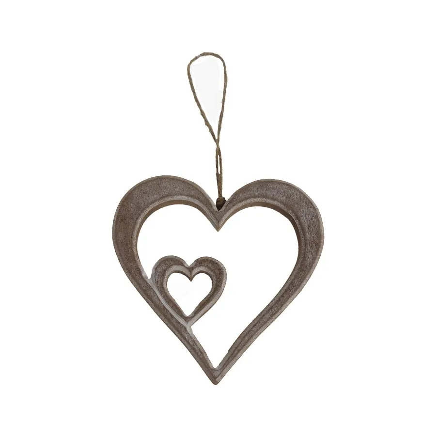 Deko-Herz zum Aufhängen. Abmessungen: 13,5 x 13 cm, Dicke 1,5 cm. Farbe braun. Material auf Holzbasis.