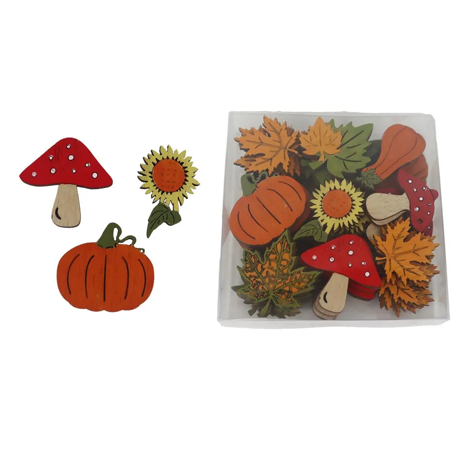 Ein Satz Herbstdekorationen in einer Schachtel. Das Set enthält 72 Zubehörteile.