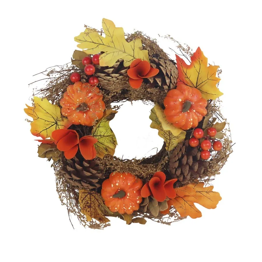 Ein wunderschön geschmückter Herbstkranz.