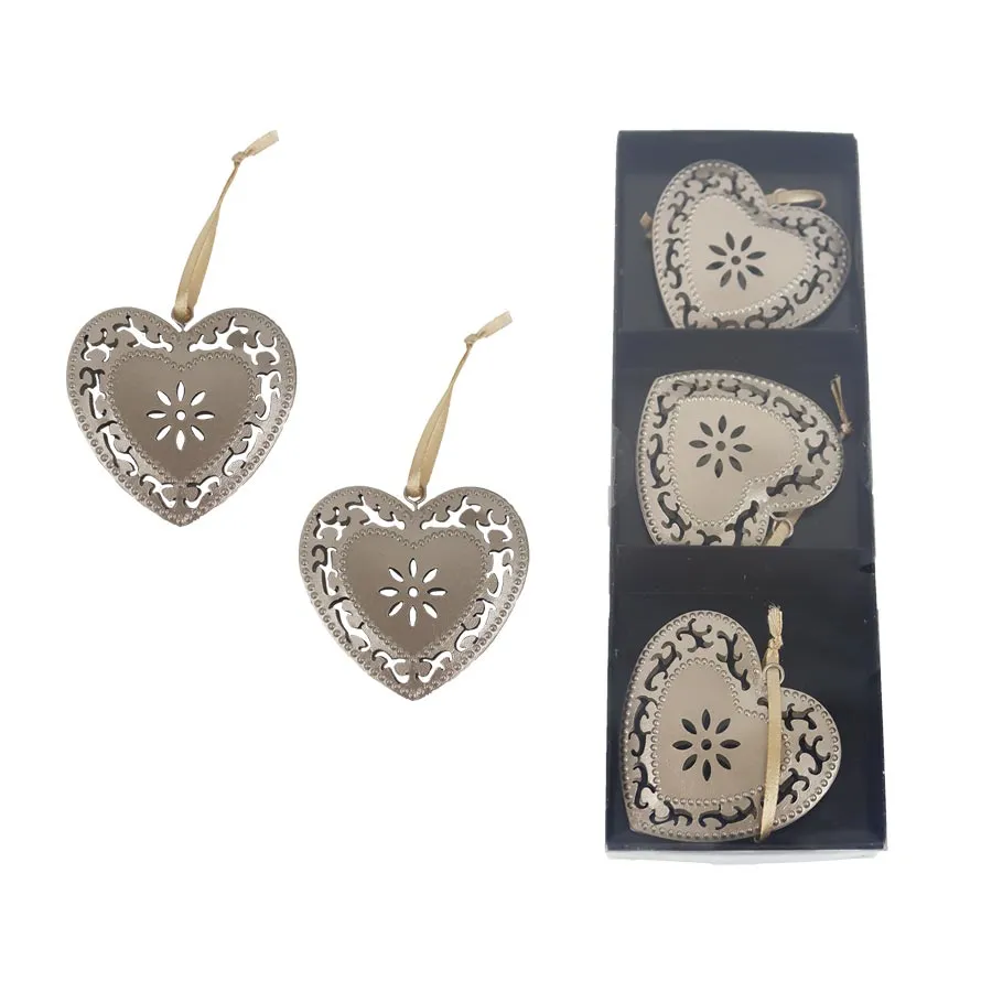 Set von dekorativen Herzen zum Hängen. Das Set enthält 3 Herzen. Maße: Farbe: Gold. Material: Metall.