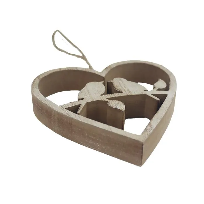 Deko-Herz zum Aufhängen. Abmessungen: 11 x 11 cm, Dicke 2,5 cm. Farbe: natürlich. Material auf Holzbasis.