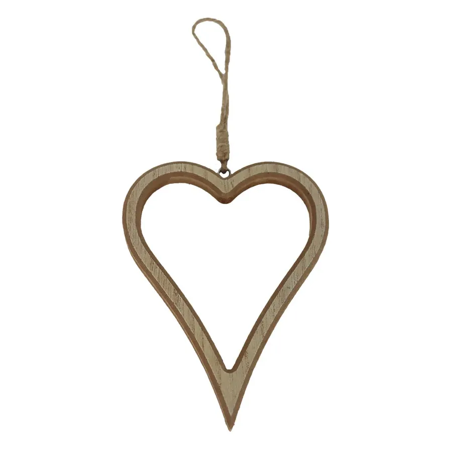 Deko-Herz zum Aufhängen. Abmessungen: 12 x 15 cm, Dicke 1,2 cm. Farbe: natürlich. Material auf Holzbasis.