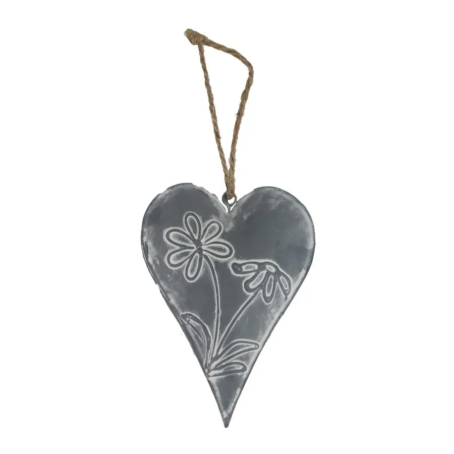 Deko-Herz zum Aufhängen. Abmessungen: 7 × 10 cm, Dicke 1,5 cm. Graue Farbe. Material: Metall.