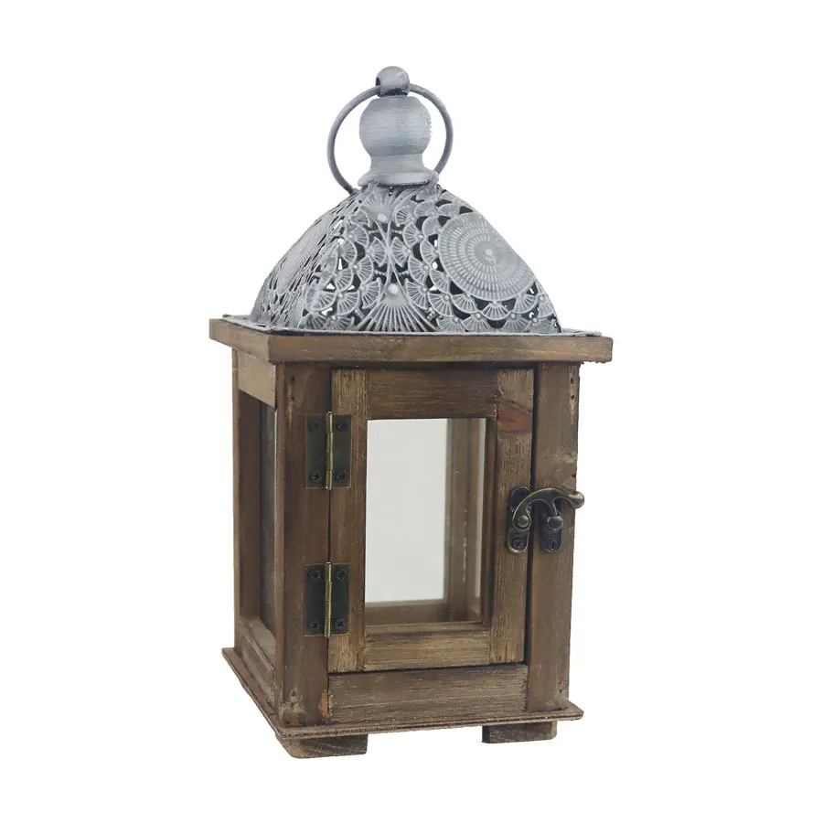 Bringen Sie den Charme des orientalischen Stils in Ihr Haus oder Ihren Garten. Diese Laterne besteht aus Holz und Glasplatten, der obere Teil ist aus Metall. Die Laterne verfügt über einen praktischen Griff, der Ihnen den Transport zwischen Haus und Garten erleichtert.