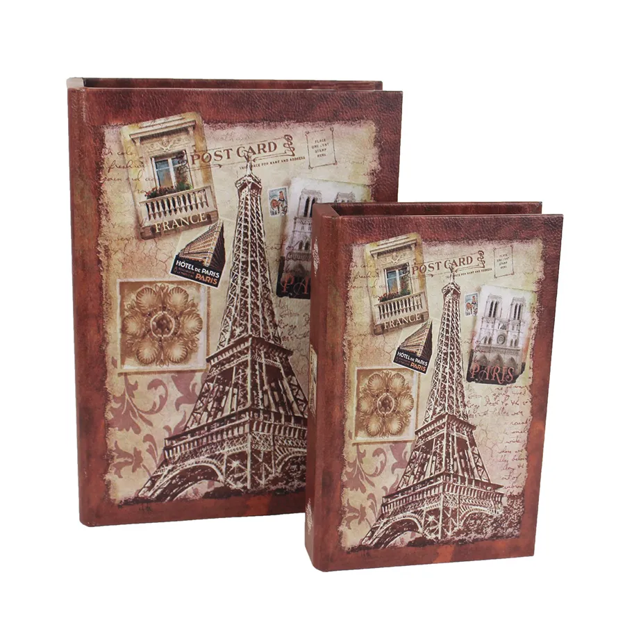 Ein wunderschönes Set Holzbücher mit dem Eiffel-Motiv. Dieses Set enthält 2 Holzbücher. Das kleine Buch ist 14 cm breit, 4 cm dick, 22 cm hoch. Das große Buch ist 20 cm breit, 6 cm dick und 28 cm hoch. Material – MDF-Platte, Oberfläche – Leinwand.