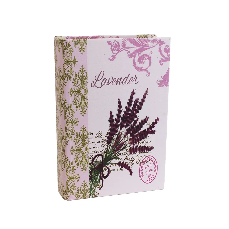 Ein wunderschönes Holzbuch mit Lavendelmotiv.