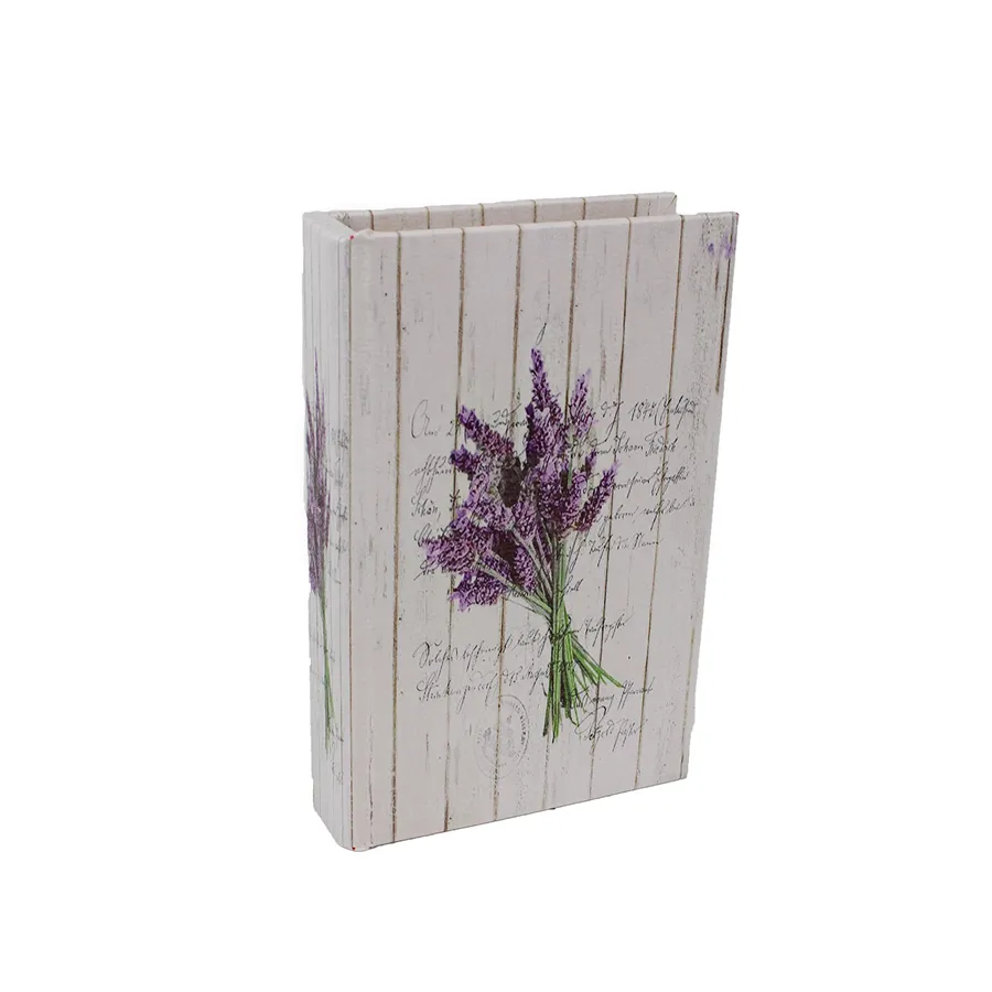 Ein wunderschönes Holzbuch mit Lavendelmotiv.