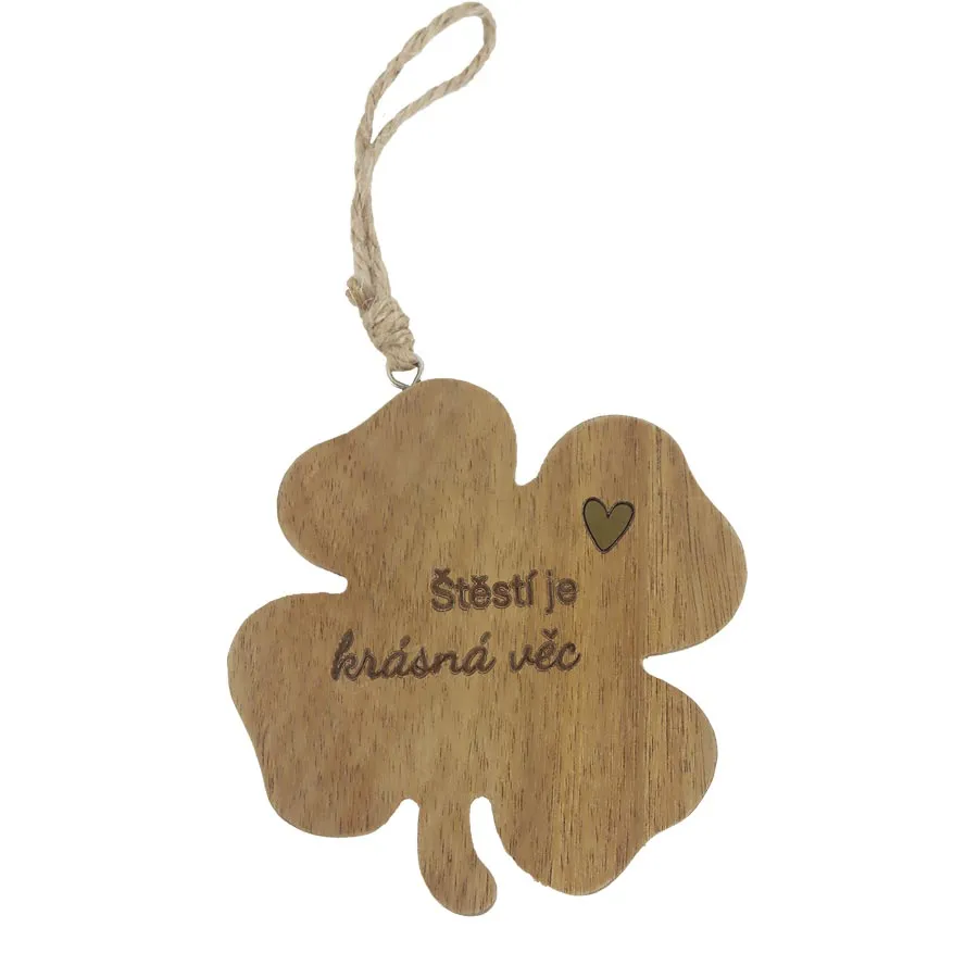 Dekoratives Vierpass-Holzschild zum Aufhängen mit der Aufschrift - ŠTĚSTÍ JE KRÁSNÁ VĚC.