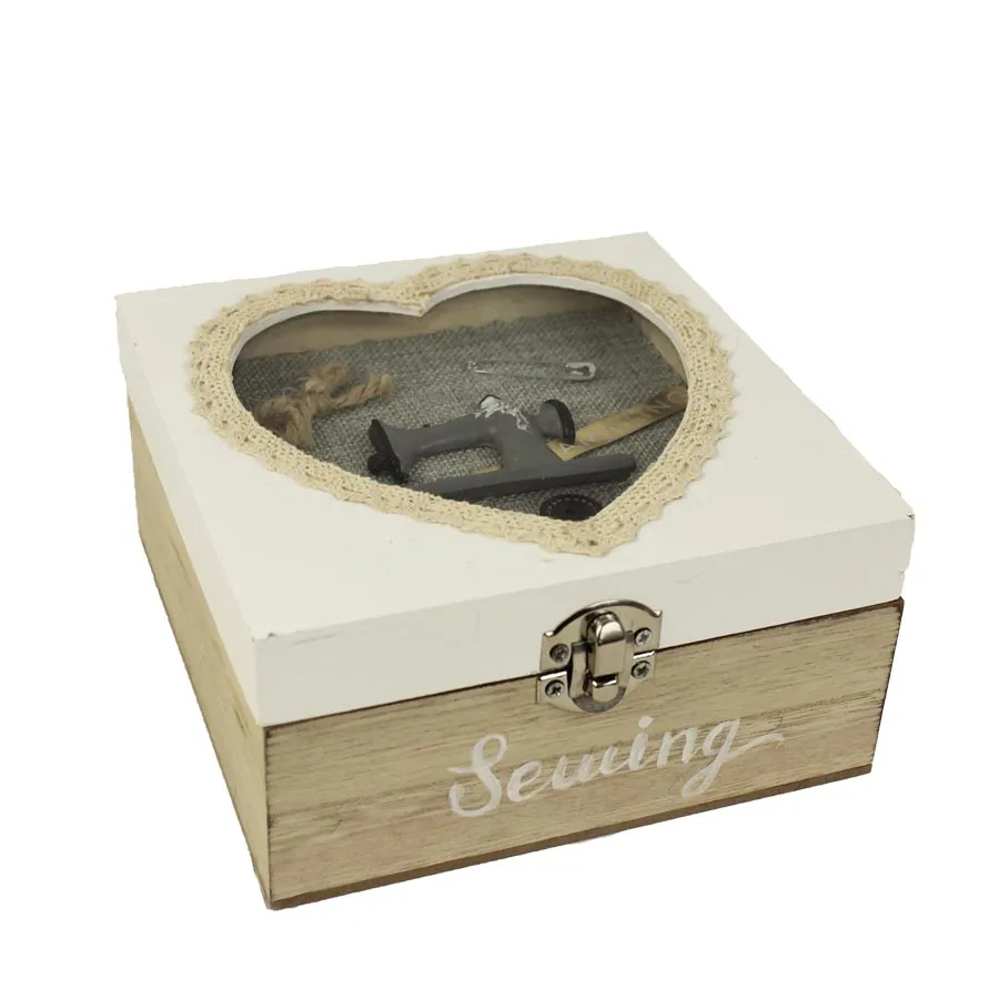Holzkiste - Nähen. Maße: 15 x 15 cm, Höhe 7,5 cm. Material: MDF.