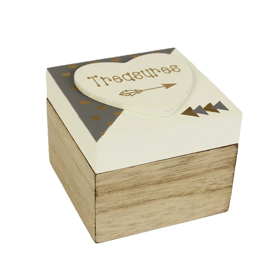 Holzbox. Maße: 7 x 7 cm, Höhe 6 cm. Material: MDF.