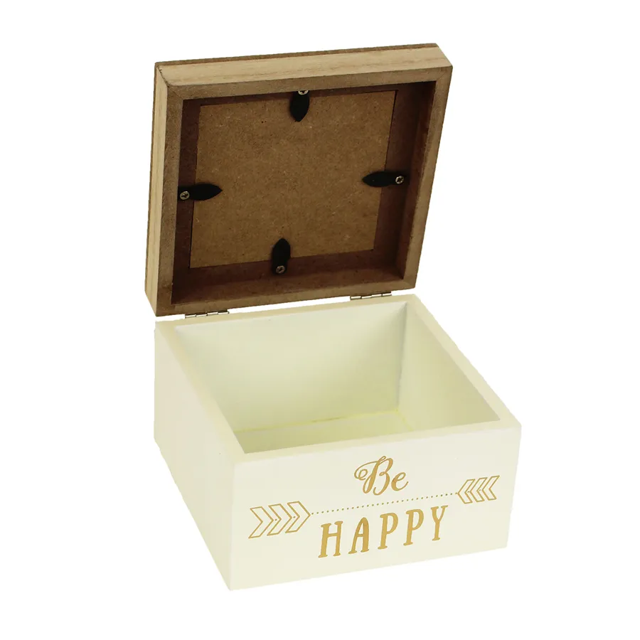 Holzkiste für verschiedene Zwecke. Maße: 11 x 11,2 cm, Höhe 7,5 cm. Material: MDF.
