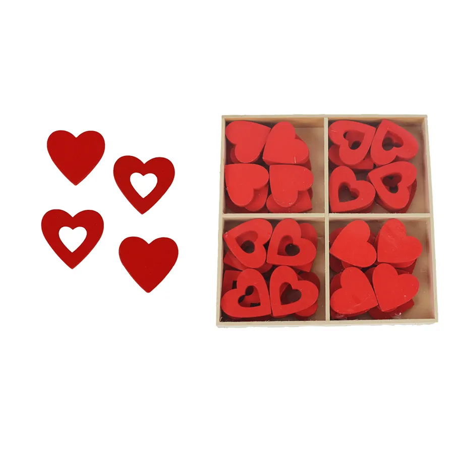 Set - Herzen Enthält: 48 St. Maße: Breite 2,8 cm, Dicke 0,4 cm, Höhe 2,8 cm. Farbe: Rot. Material: Holz.