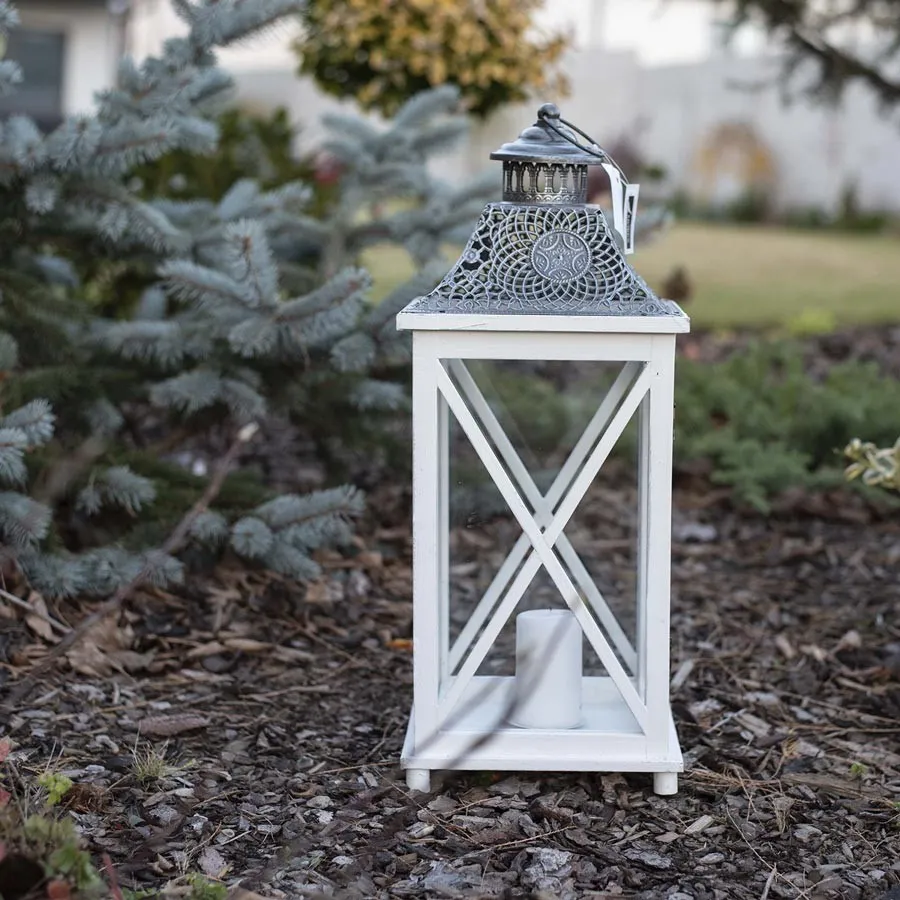 Schöne große Laterne. Bringen Sie den Charme des orientalischen Stils in Ihr Haus oder Ihren Garten. Diese Laterne besteht aus Holz und Glasplatten, der obere Teil ist aus Metall. Die Laterne verfügt über einen praktischen Griff, der Ihnen den Transport zwischen Haus und Garten erleichtert.