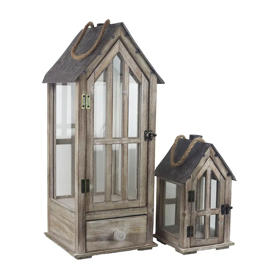 Bringen Sie den Charme des orientalischen Stils in Ihr Haus oder Ihren Garten. Diese Laternen bestehen aus Holz und Glasplatten, der obere Teil besteht aus Metall. Die Laternen verfügen über einen praktischen Griff, der Ihnen den Transport zwischen Haus und Garten erleichtert.