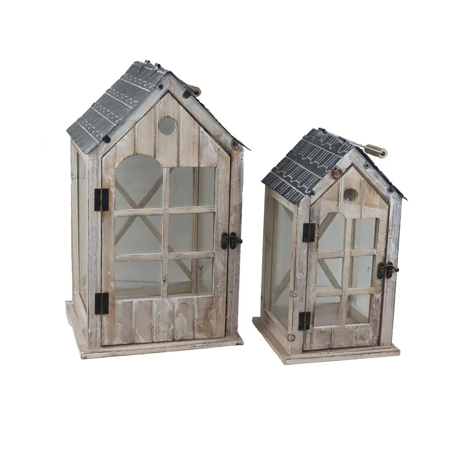 Ein Satz Holzlaternen. Im Set sind 2 Laternen in zwei Größen enthalten. Die kleine Laterne hat die Maße: 18 x 18,5 cm, Höhe 34 cm, Gesamthöhe mit Ohr 42 cm. Die große Laterne hat die Maße: 25 x 25,5 cm, Höhe 44 cm, Gesamthöhe mit Griff 53 cm. Bringen Sie den Charme des orientalischen Stils in Ihr Haus oder Ihren Garten. Diese Laternen bestehen aus Holz und Glasplatten, der obere Teil besteht aus Metall. Die Laternen verfügen über einen praktischen Griff, der Ihnen den Transport zwischen Haus und Garten erleichtert.