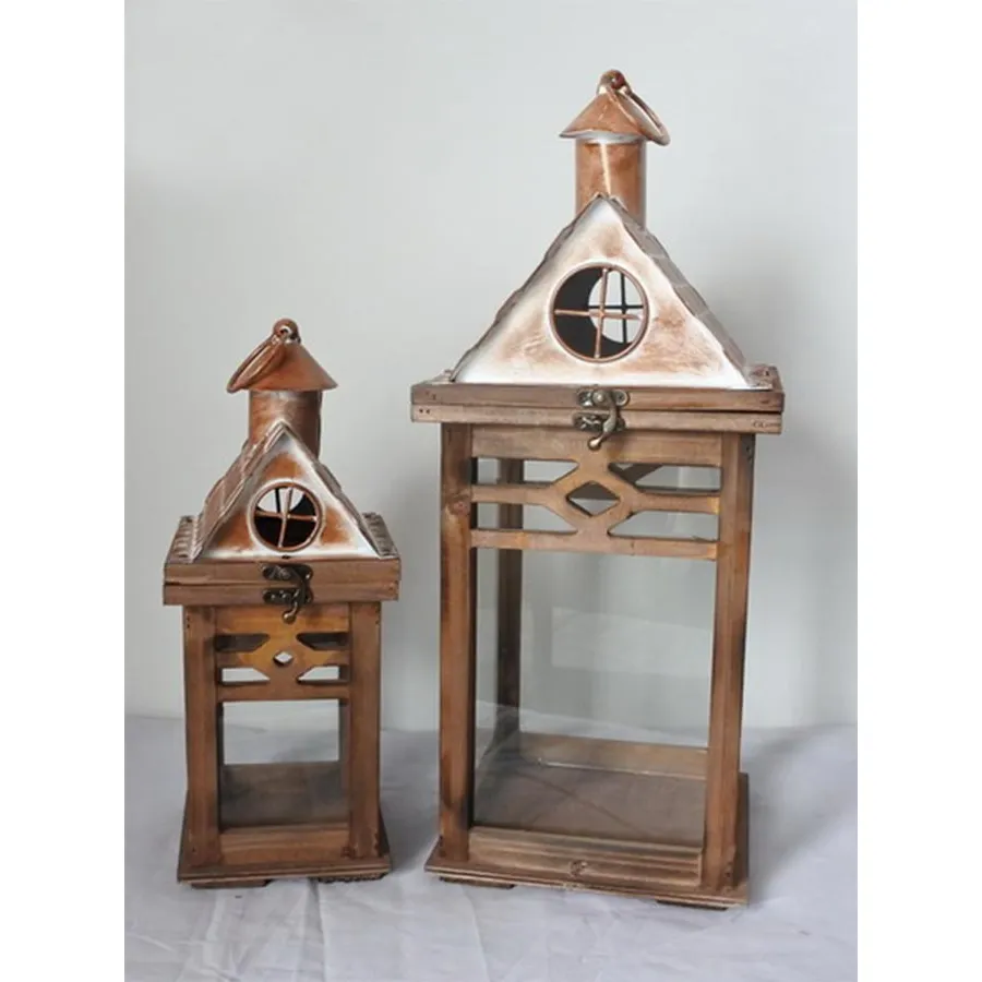 Bringen Sie den Charme des orientalischen Stils in Ihr Haus oder Ihren Garten. Diese Laternen bestehen aus Holz und Glasplatten, der obere Teil ist aus Metall. Die Laternen haben einen praktischen Henkel, der den Transport zwischen Haus und Garten erleichtert.