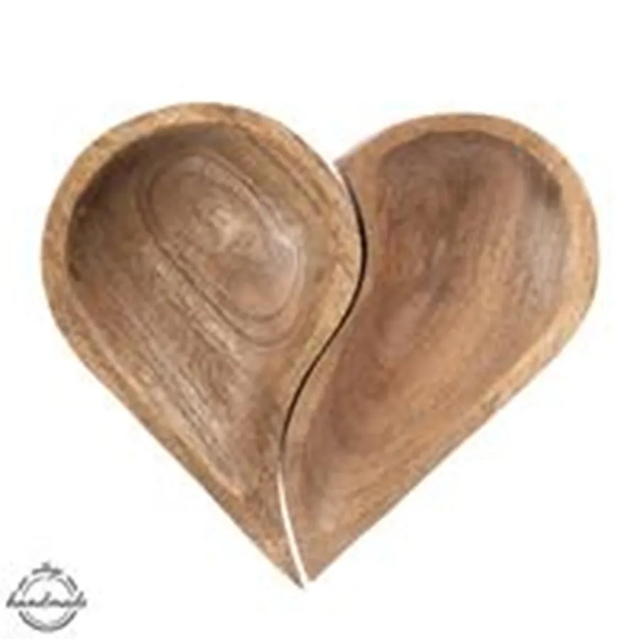 Servierschale aus Naturmaterial in Herzform ist in 2 separate Teile unterteilt.