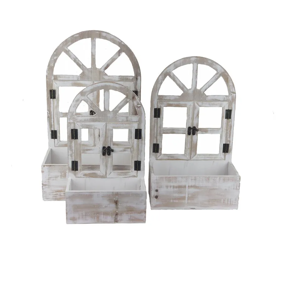 Ein Set aus Holzverpackungen für Blumen mit Kunststoff. Das Set enthält drei Kisten in drei Größen. Die kleine Verpackung hat die Maße: 22 x 10 cm, Höhe 9 cm, Gesamthöhe 37 cm. Die mittlere Verpackung hat die Maße: 26 x 13 cm, Höhe 10 cm, Gesamthöhe 42 cm. Die große Verpackung hat die Maße: 30 x 16 cm, Höhe 11 cm, Gesamthöhe 48 cm.