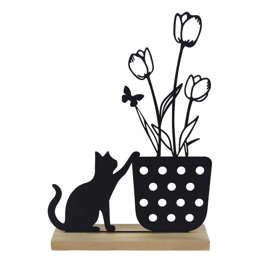 Katzendekoration mit Blume K4782