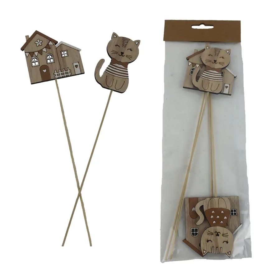 Katzenfigur, Haus, am Stiel 4 St. D7771