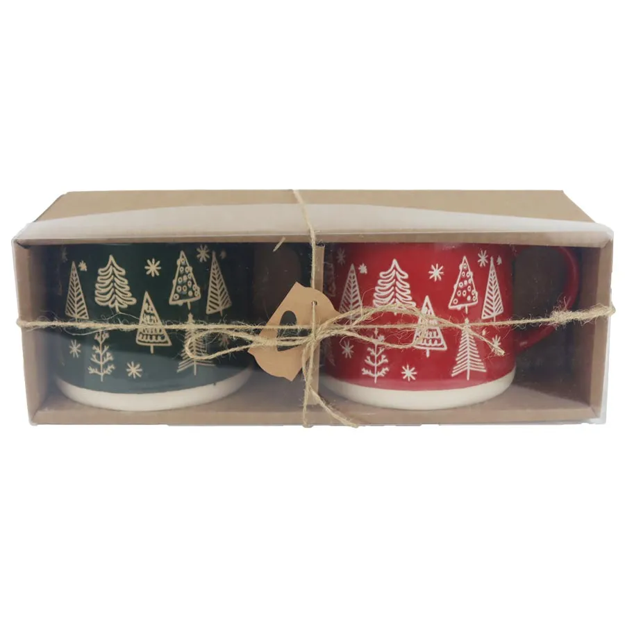 Set Keramikbecher in einer Box. Das Set beinhaltet 2 Tassen, 2 Designs. Der Becher hat ein Volumen von 360 ml.