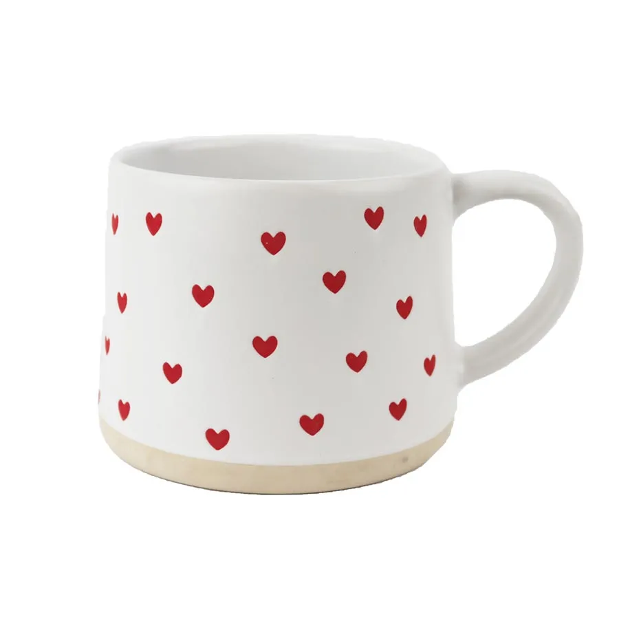 Keramikbecher mit Herzen. Der Becher hat ein Volumen von 360 ml.