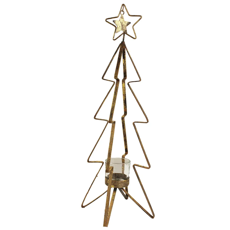 Kerzenhalter für eine Kerze. Maße: 10 x 10 cm, Höhe 42 cm. Material: Metall, Glas.