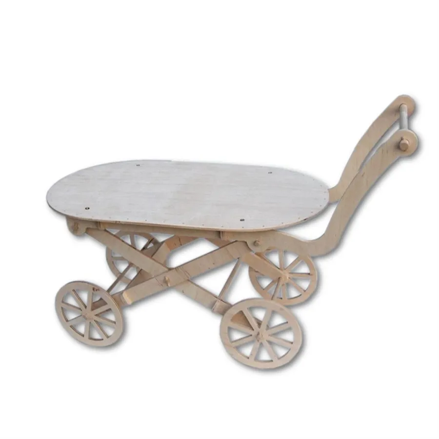 Der Kinderwager lässt sich leicht zerlegen und wieder zusammenbauen. Geeignet zum Bekleben mit einer Serviette, zum Beizen, Lackieren oder Streichen.