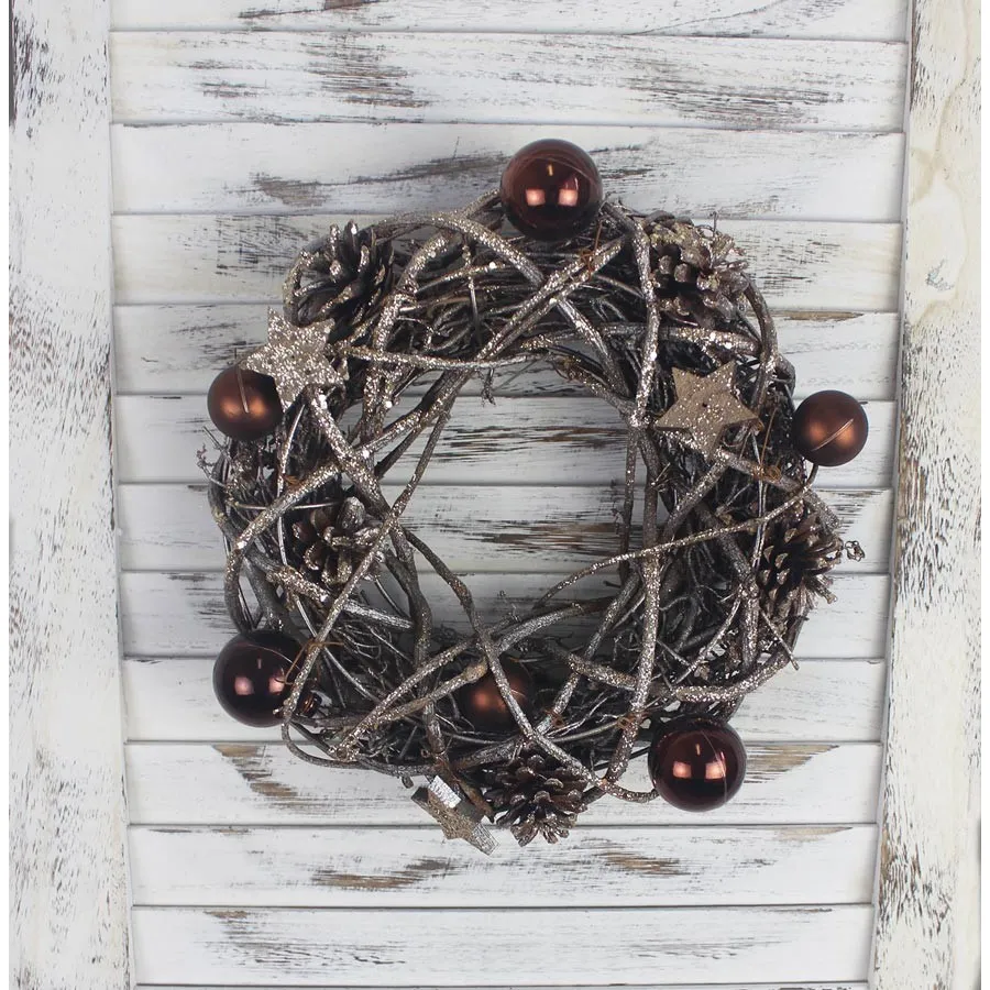 Dekorierter Kranz. Maße: Durchmesser 24 cm, Dicke 7,5 cm Material: natürlich mit Dekorationen