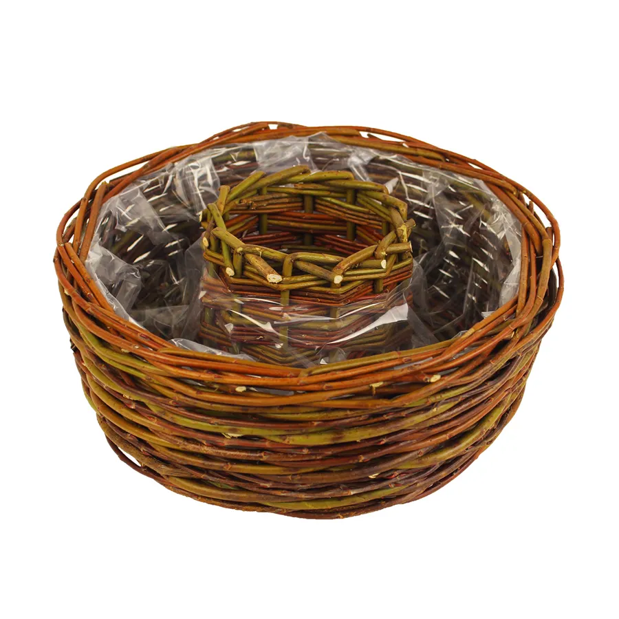 Weiden Runder Blumentopf. Mit Plastikfolie.