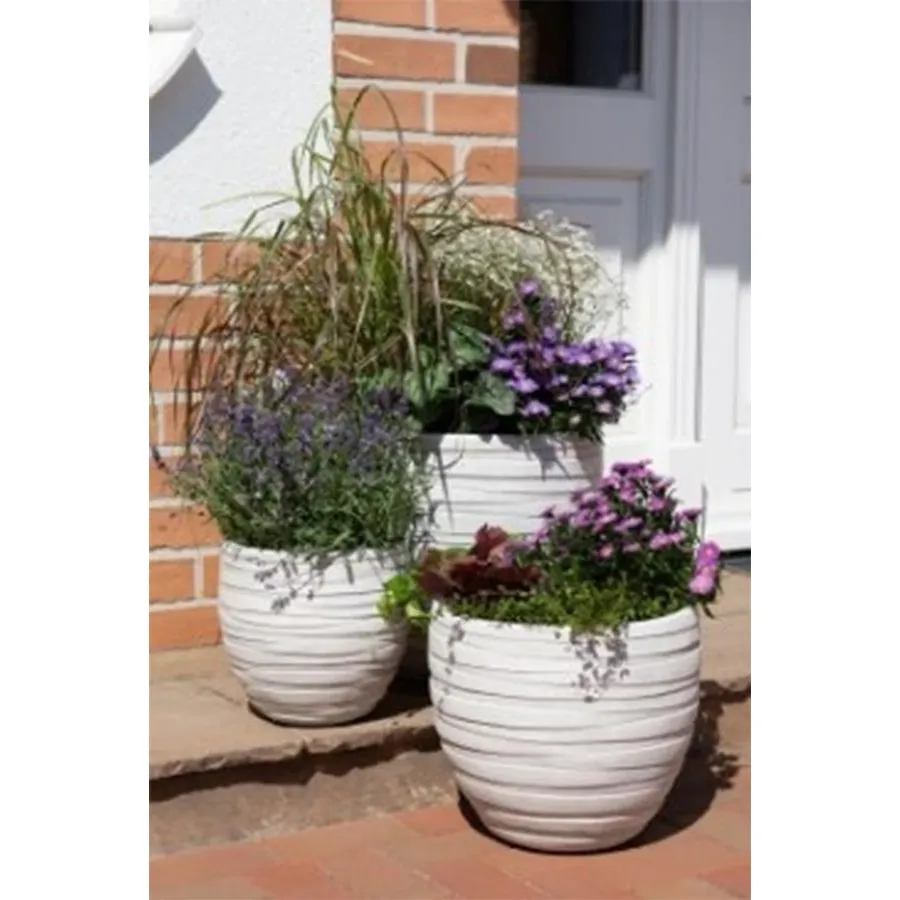 Ein Verpackungssatz zum Pflanzen. Es ist nicht frostbeständig, verstecken Sie es für den Winter! Das Set enthält 3 Behausungen in drei Größen. Das kleine Paket hat einen Durchmesser von 27 cm und eine Höhe von 2,5 cm. Das mittlere Paket hat einen Durchmesser von 36 cm, eine Höhe von 31,5 cm. Die große Verpackung hat einen Durchmesser von 46 cm und eine Höhe von 39 cm. Weiße Farbe. Material: Magnesium.