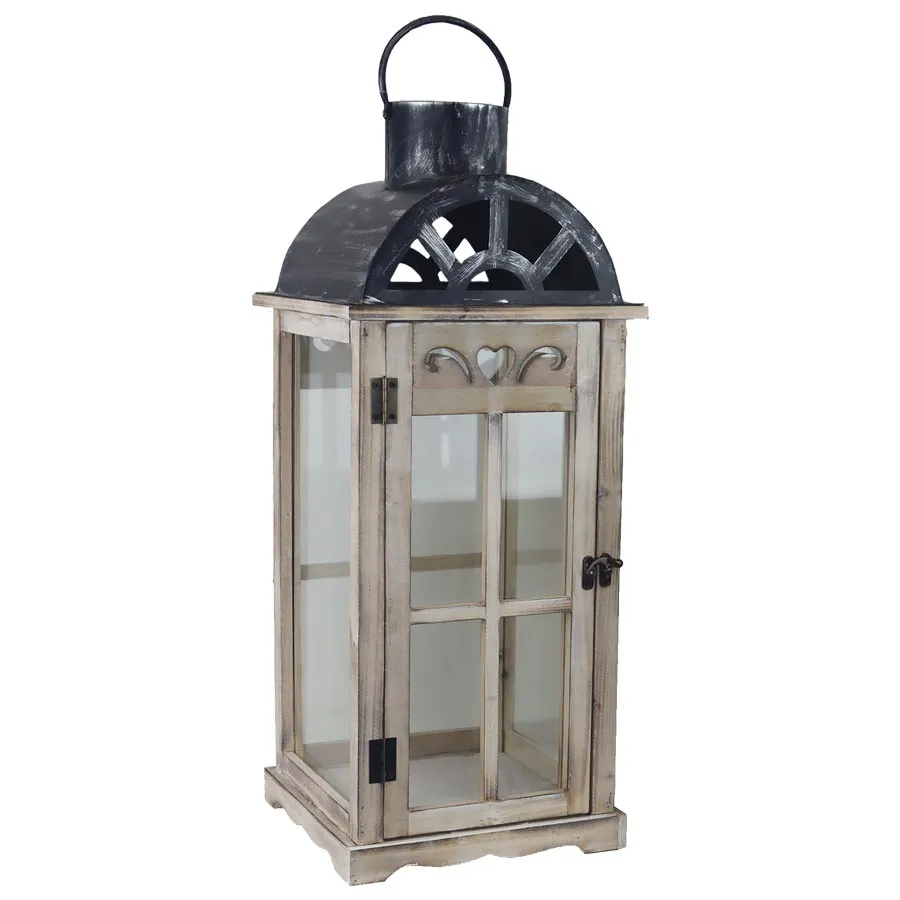 Bringen Sie den Charme des orientalischen Stils in Ihr Haus oder Ihren Garten. Diese Laternen bestehen aus Holz und Glasplatten, der obere Teil besteht aus Metall. Die Laternen verfügen über einen praktischen Griff, der Ihnen den Transport zwischen Haus und Garten erleichtert.