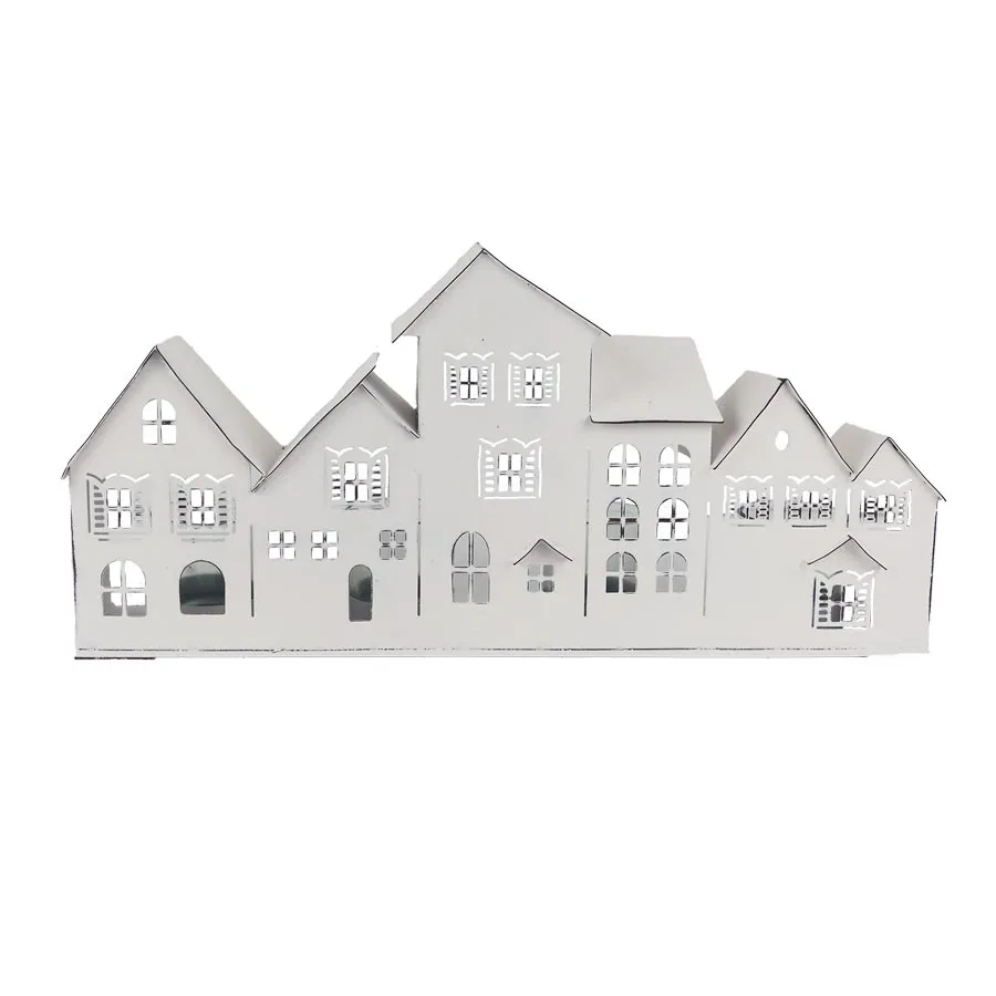 Dekorativer Kerzenständer Dorf aus Metall für 4 Kerzen.