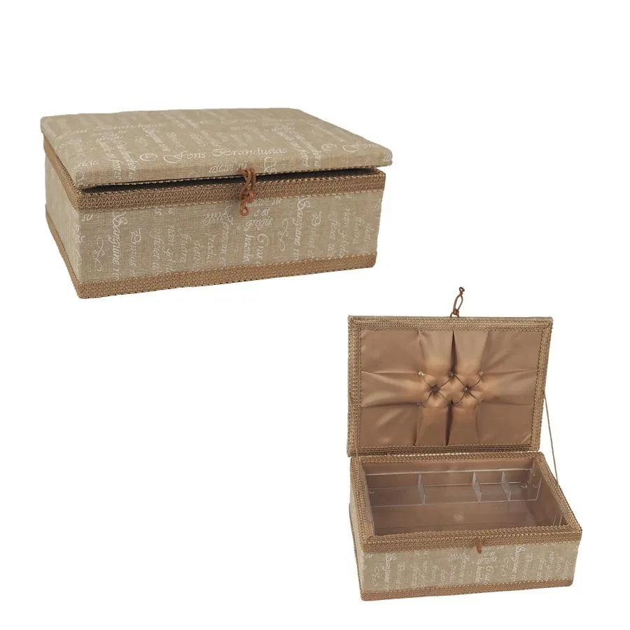 Die Kassette enthält ein Kunststofffach. Die Kassette misst 27 x 19 cm, Höhe 10,5 cm. Material: Stoff.