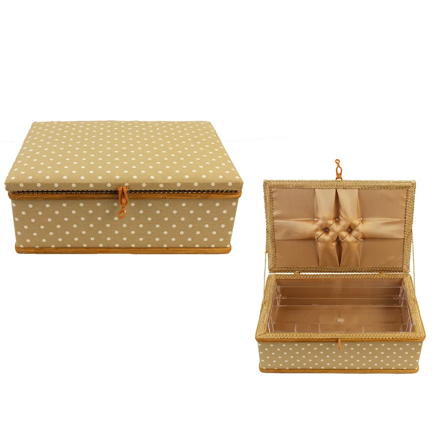 Die Kassette enthält ein Kunststofffach. Maße: 27 x 19,5 cm, Höhe 10,5 cm. Material: Stoff.