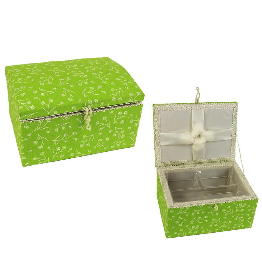 Nähkästchen. Maße: 21 x 16 cm, Höhe 12 cm Material: Stoff Mit abnehmbares Fach aus transparentem Kunststoff.