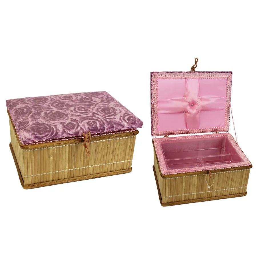 Gespaltener Bambus, Deckel-Möbeldekoration aus Stoff, Kassette inklusive Kunststofffach. Die Kassette misst 22 x 16 cm, Höhe 11 cm.