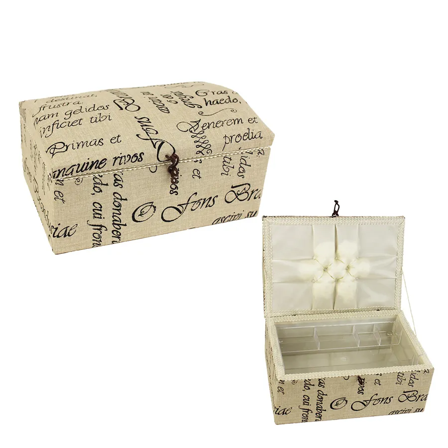 Nähkästchen mit abnehmbarem Fach aus transparentem Kunststoff. Maße: 27 x 19 cm, Höhe 14 cm Material: Stoff